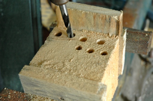 Lubang-lubang dibor secukupnya ke dalam bahan tetapi tidak begitu jauh